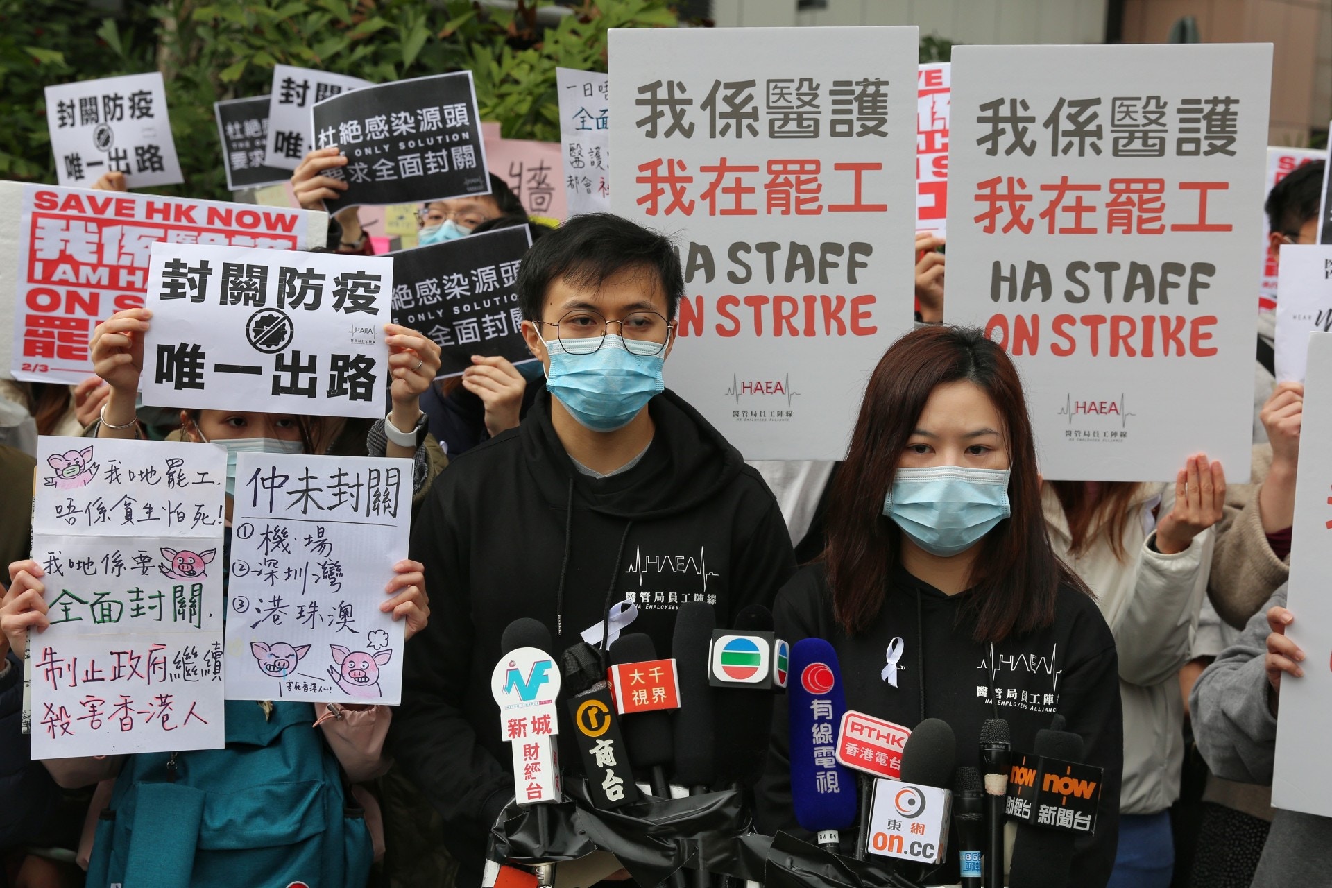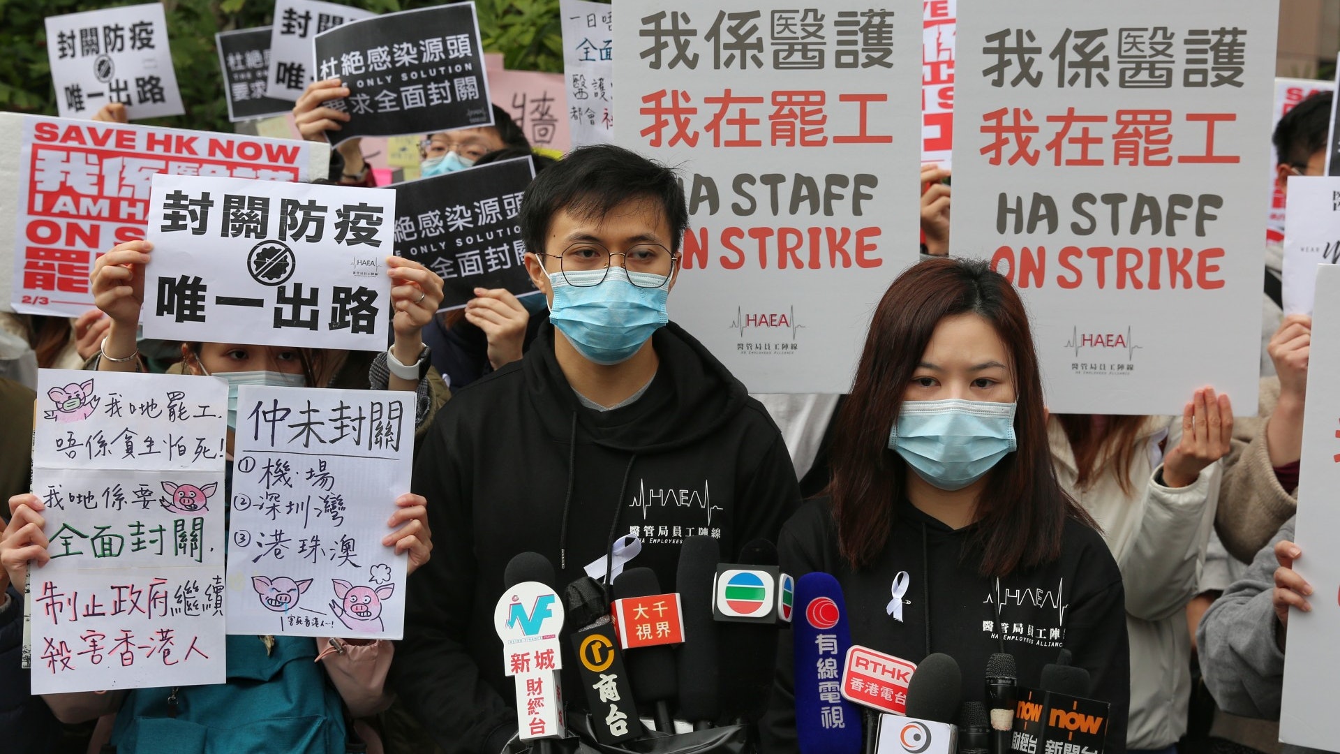 抗議港府不封關近萬醫護人員3日起連續5天舉行大罷工 武漢肺炎 醫管局員工陣線 罷工 梁卓偉 新型冠狀病毒 封關 希望之聲